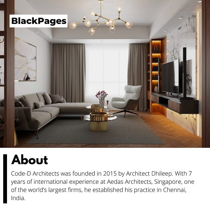 Code-D Architects began in 2015, under the leadership of Architect Dhileep. He Graduated from the School of Architecture & Planning (SAP), Anna University, Chennai. Ar Dhileep started working with Aedas Architects in Singapore, which is one of the world’s biggest Architecture firms globally. Completing his 7 years of international work experience with Aedas Architects-Singapore, he detached himself to start his own Office in Chennai, INDIA.